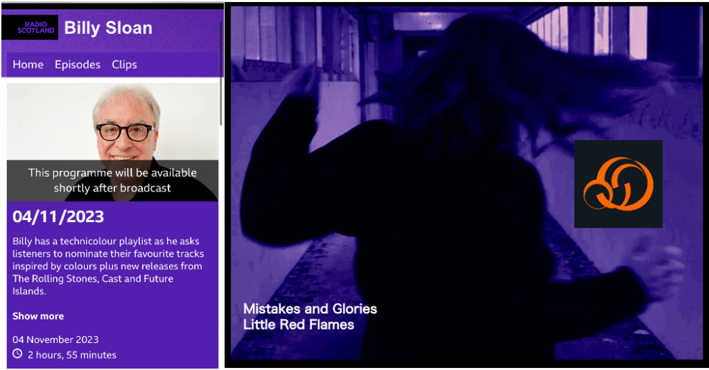 Huge thanks to Billy Sloan who is going to play Mistakes and Glories from the album on his show on BBC Scotland on Saturday 4th November sometime after midnight. Thanks also to Raymond Macdonald whose awesome saxophone features on this tune.