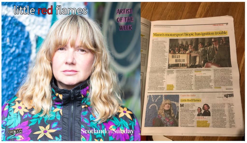 I am very excited to be the Artist of the Week in the Scotland on Sunday with a lovely review of the album by Derick MacKinnon and Olaf Furniss. It includes this cracking quote – “Produced by Alex Smoke, the album is a brilliant, slightly dark mix of electro-tinged bleeps and blips with pop lyrics and 80s dancefloor vibes.” Thank you so much.
